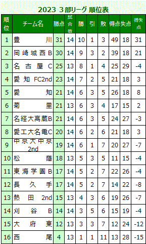 高円宮杯 JFAU-18サッカーリーグ2023 愛知県3部リーグ |