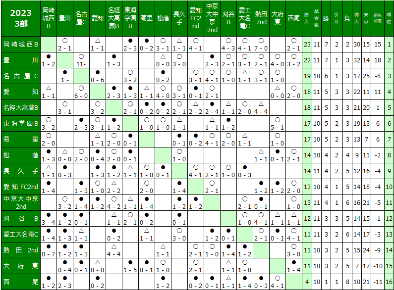 2023 3部 日程表・試合結果