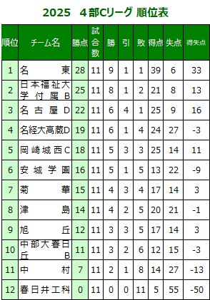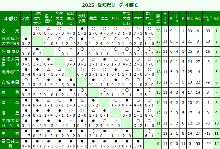 | 高円宮杯U-18サッカーリーグ 愛知県リーグ | |||||||||||||||||||||||||||||||||||||||||||||||||||||||||||