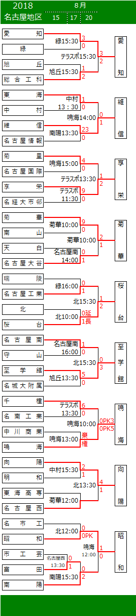 2018 第97回全国高校サッカー選手権大会 愛知県 名古屋地区予選 (下段より、試合結果情報をお寄せください。勝敗表に反映いたします。)