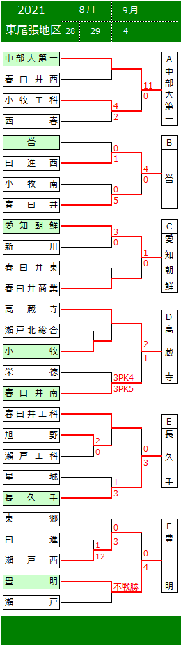 2021 第100回全国高校サッカー選手権大会 愛知県 東尾張地区予選 (下段より、試合結果情報をお寄せください。勝敗表に反映いたします。)