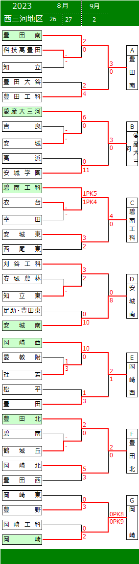 2023 第102回全国高校サッカー選手権大会 愛知県 西三河地区予選 (下段より、試合結果情報をお寄せください。勝敗表に反映いたします。)