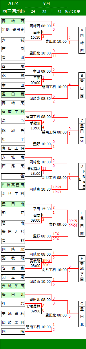 2024 第103回全国高校サッカー選手権大会 愛知県 西三河地区予選 (下段より、試合結果情報をお寄せください。勝敗表に反映いたします。)