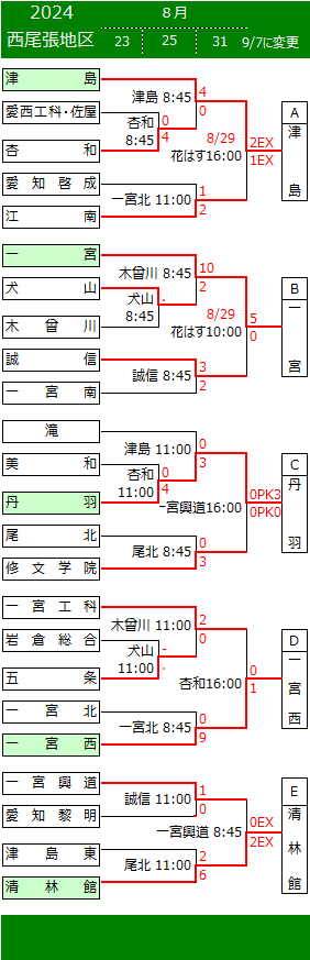 2024 第103回全国高校サッカー選手権大会 愛知県 西尾張地区予選 (下段より、試合結果情報をお寄せください。勝敗表に反映いたします。)