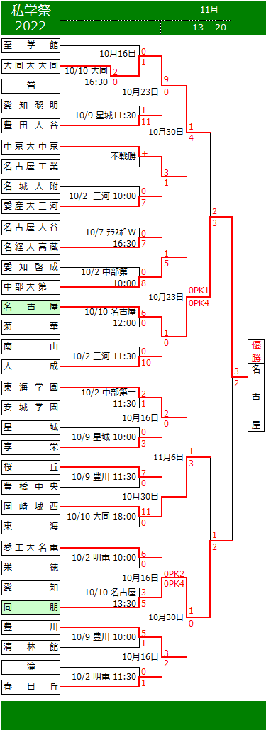 2022 令和4年度私学祭体育大会サッカー大会 トーナメント (下段より、試合結果情報をお寄せください。トーナメント表に反映いたします。)