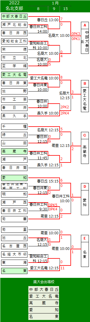 | (東邦、名古屋は県大会シード) |