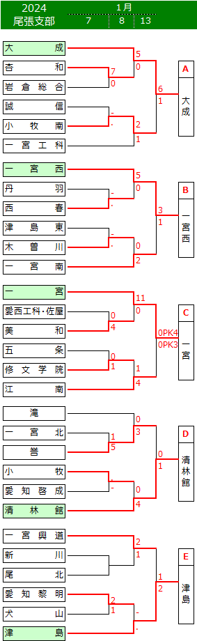 愛知県高校サッカー新人大会の結果を送信ください。 記入例 富士山 3-3 琵琶湖 ◇