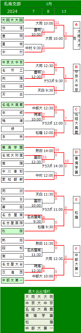 愛知県高校サッカー新人大会の結果を送信ください。 記入例 富士山 3-3 琵琶湖 ◇