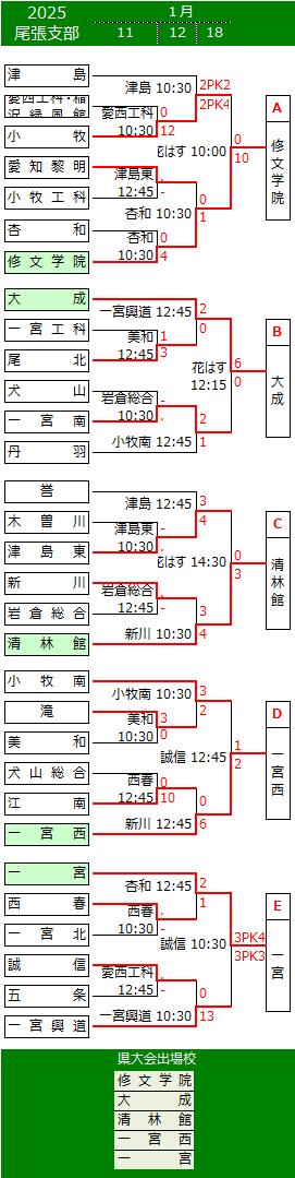 愛知県高校サッカー新人大会の結果を送信ください。 記入例 富士山 3-3 琵琶湖 ◇